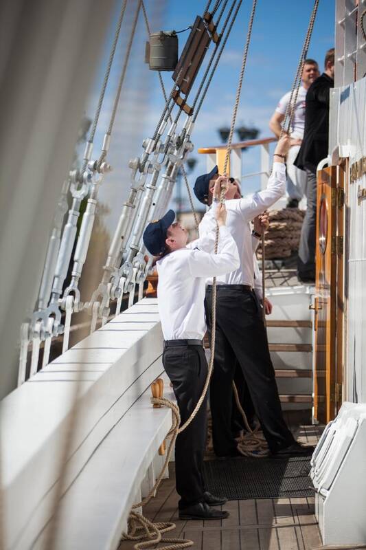 Atiduodant pagarbą daugiau nei 70 metų skaičiuojančiai buvusio mokomojo burlaivio istorijai bei jo pirminei paskirčiai, kaip ir kasmet, bures kels Lietuvos aukštosios jūreivystės mokyklas kursantai. O šios mokyklos choras renginį nuspalvins tradicinėmis jūreivių dainomis - šantėmis, kurias atlikdami vaikinai ne tik dainuoja, bet ir atkartoja darbo burlaivyje judesius.