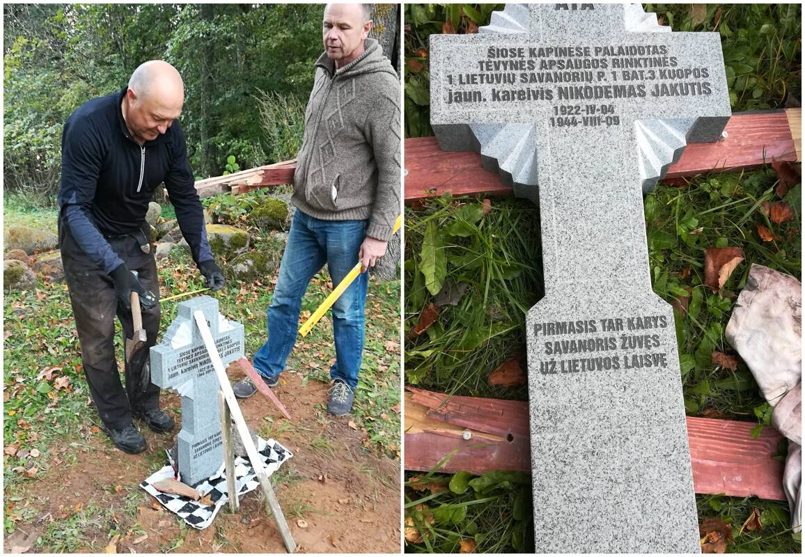 Susisiekęs su atsakingu Kauno savivaldybės darbuotoju, sužinojo, kas ir kur juos gamino. Vyrai užsakė tokį pat paminklą ir visų pamirštam savanoriui iš Aukštaitijos.