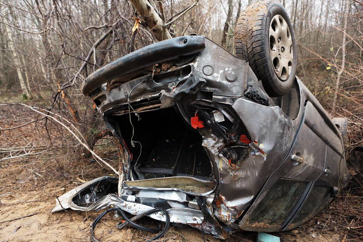 Skriedamas automobilis vertėsi ir aukštyn ratais tėškėsi į nupjautų krūmų ir medžių krūvą.