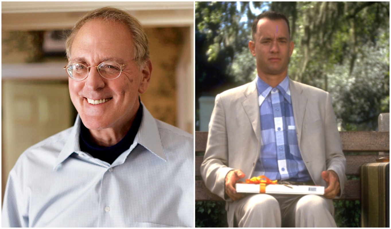 Winstonas Groomas,(kairėje) ir kadras iš filmo Winstonas Groomas,(kairėje) ir kadras iš filmo Winstonas Groomas,(kairėje) ir kadras iš filmo