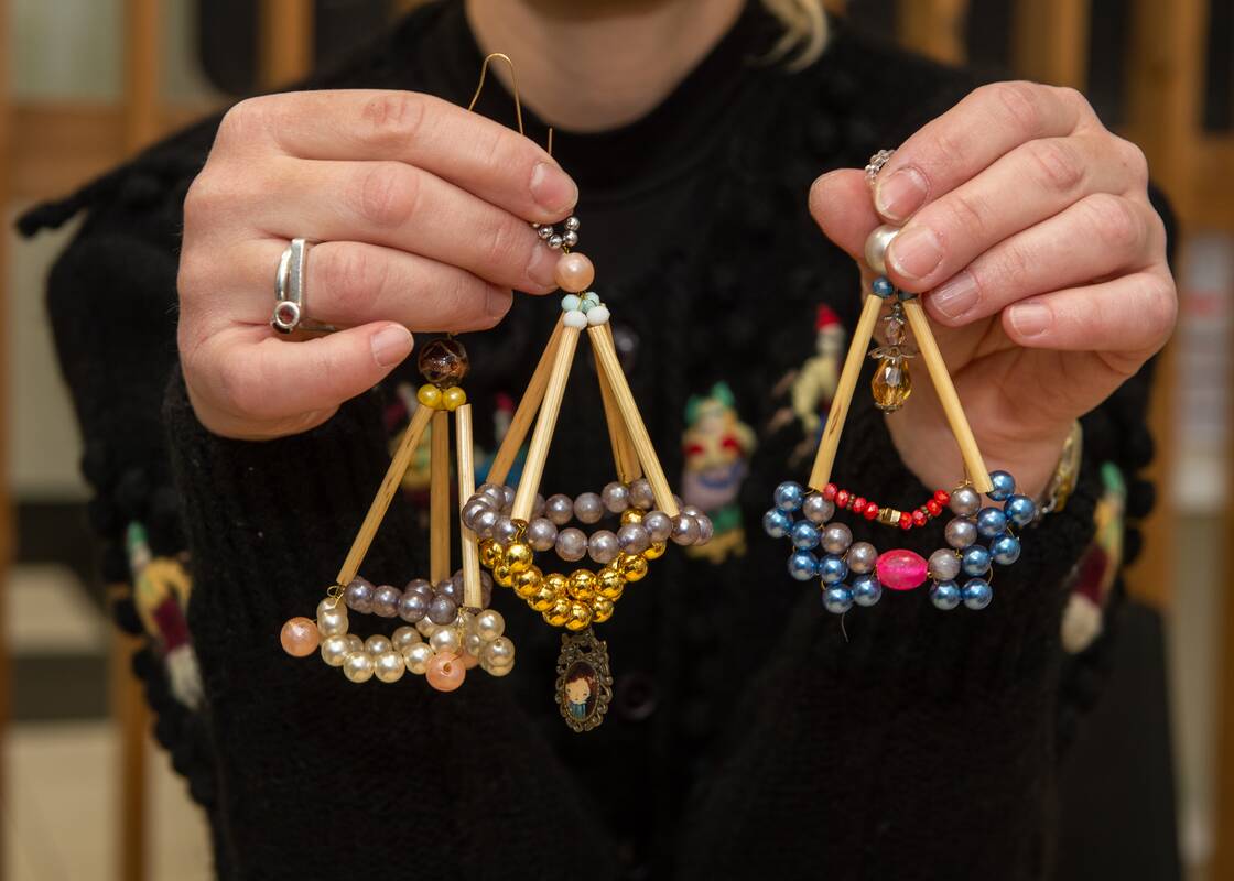 „Visus žaisliukus šiemet sukūrėme iš vaikiškų žaislų likučių, – sako kūrybininkė. – Panaudojome kaladėles, karuselės, kuri kabinama virš kūdikio lovytės, detales. Gumeles keitėme vielute, papildėme žaisliukus karoliukais ir turime visą kolekciją naujų spalvingų eglutės žaisliukų.“