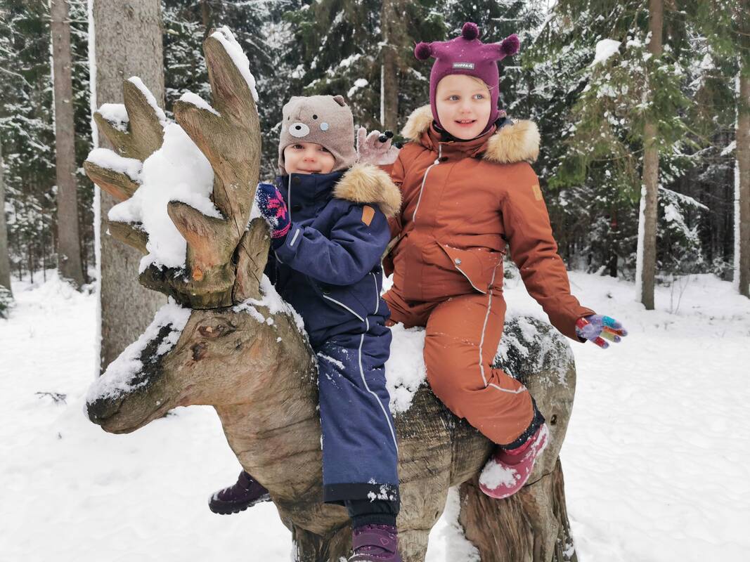Šventiškai: Kalėdoms Loretos ir Daliaus Sungailų atžalos mielai pasipuošia Kalėdų Senelio dovanotais kombinezonais. L. Sungailienės asmeninio archyvo nuotr.