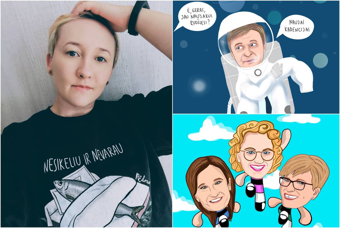 "Esu nenustygstanti vietoje, tad augindama vaiką ir nedirbdama nežinojau, kur dėtis. Iš pradžių gaminau muiliukus ir vėriau karoliukus, tačiau ši veikla nebuvo sėkminga ir neteikė džiaugsmo, – atvirauja jauna moteris. – Tada prisiminiau, kad kadaise mėgau piešti. Pradėjau nuo akvarelės ir pieštukų, kombinavau juos su tušu, o tada jau perėjau prie planšetės. Vėliau, kai piešimas tapo atviru hobiu socialiniame tinkle, pradėjau kurti politine tematika, kuria visada domėjausi."