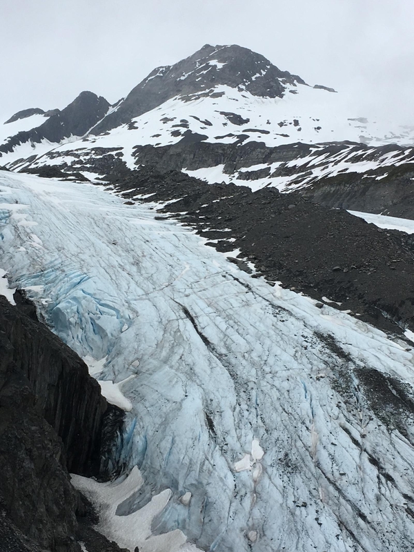 Regis, iš čia išteka visi vandenys. Čia – jų šerdis. Kur pažvelgsi, kalnai – žalsvai melsvi. Iš vienos pusės kalnas, iš kitos pusės kalnas, kalnas iš priekio ir iš galo, ir pati aš stoviu ant kalno. Aliaskoj vanduo – sidabrinis, viršūnės – baltos, dangus – balzganas, akmenys – rudai šlapi, medžiai – sodriai žali.