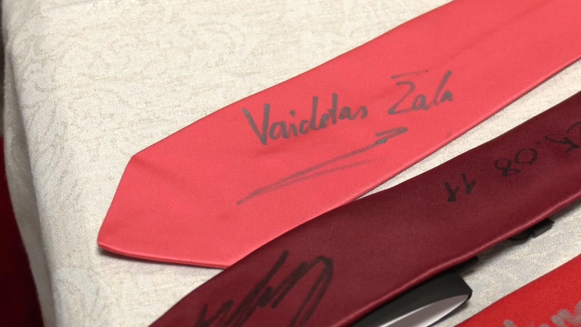 „Dar Arvydas Sabonis nelankė, bet turime jo kaklaraištį – padovanojo. Įdomesnių turime. Japonijos ambasadorius buvo pas mus, pasirašė taip pat“, – pasakojo D. Dudėnienė.