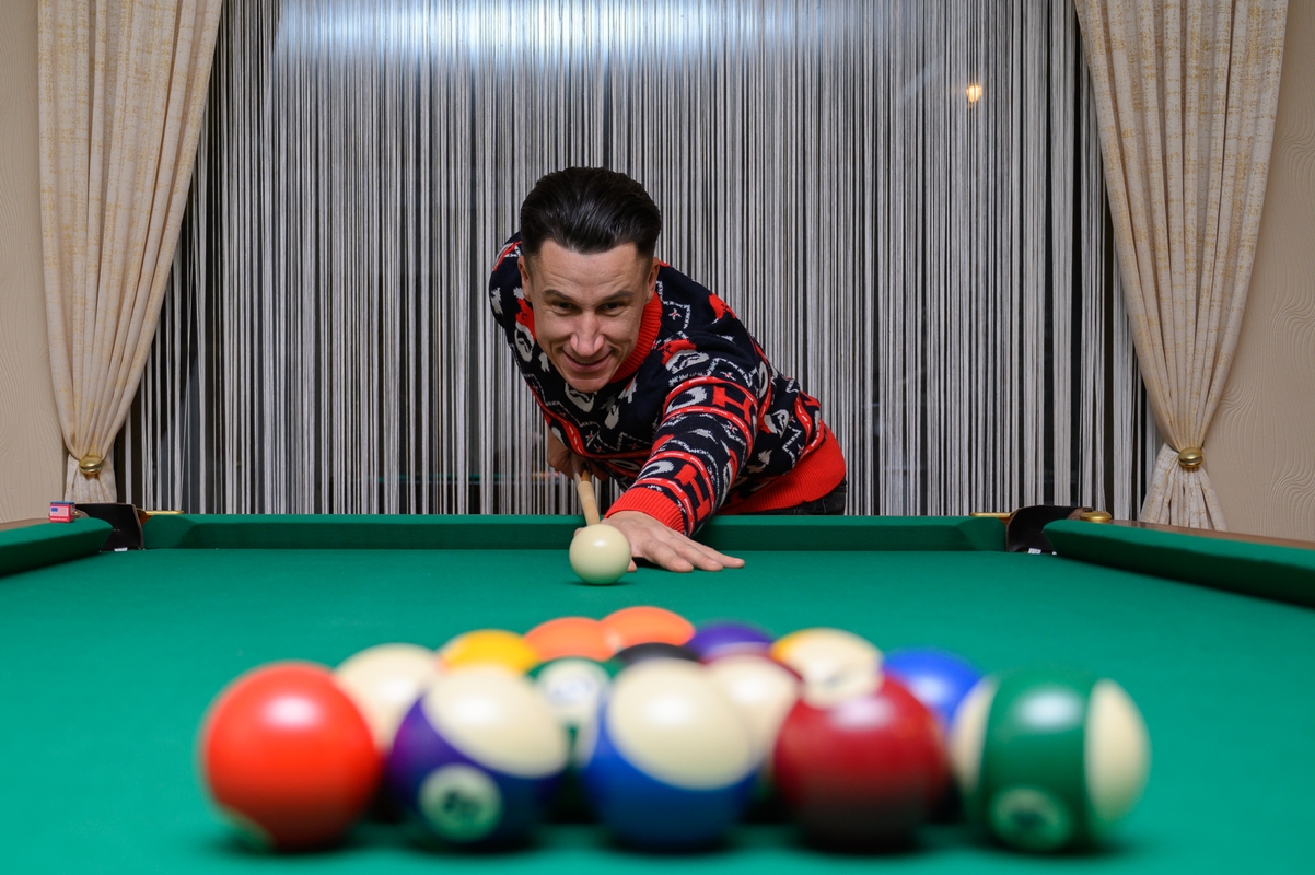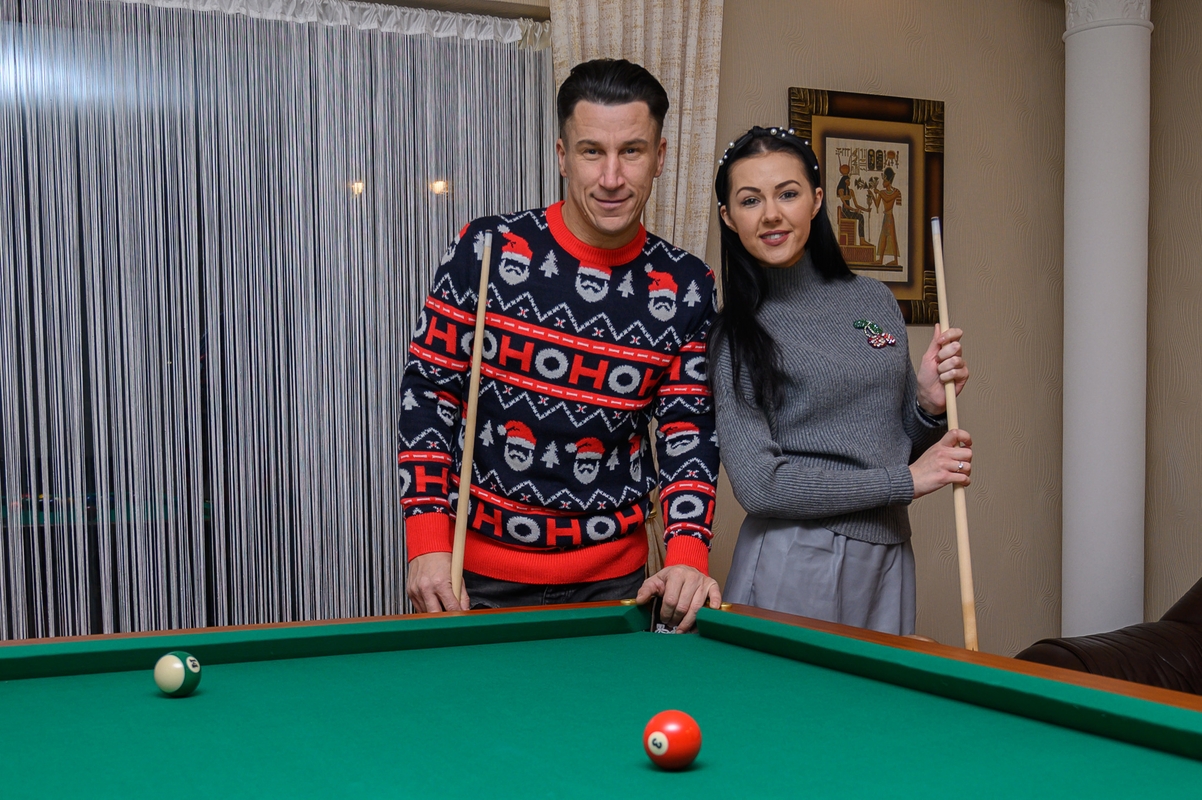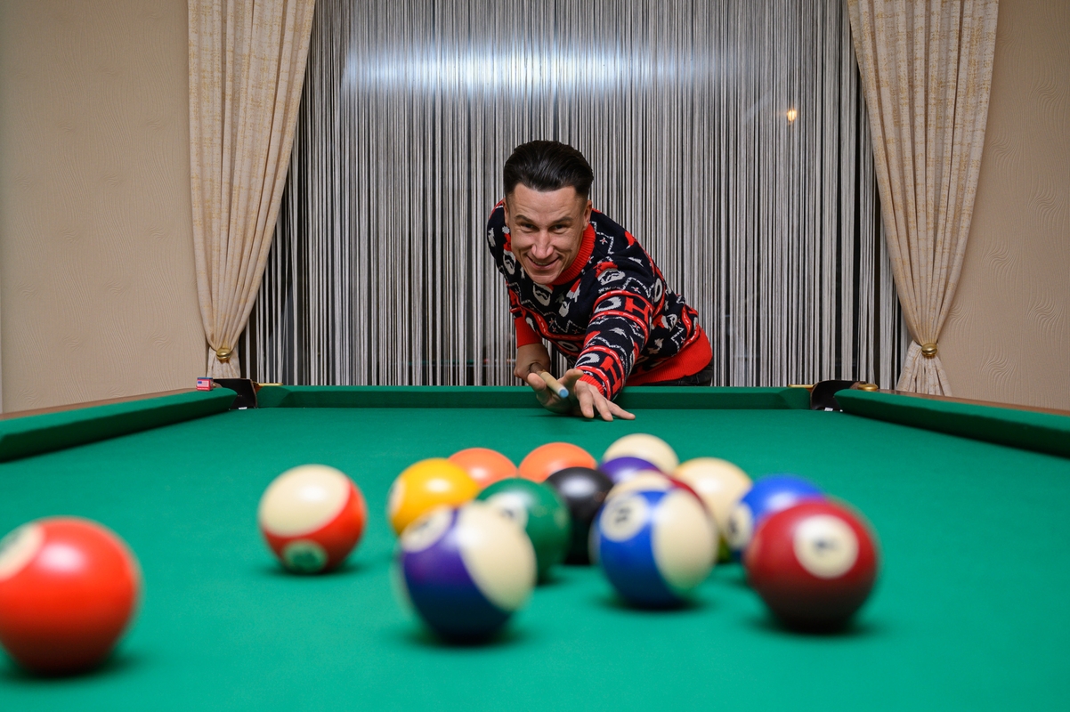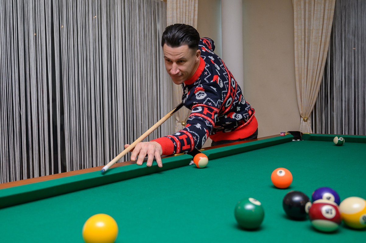 Jo namo pirmame aukšte yra dar viena erdvė, kuri tik prieš kelias dienas papildė sukaktuvininko pradėtą rengti pramogų kompleksą. Draugai Sauliui padovanojo biliardo stalą, išsyk radusį sau vietą namų poilsio zonoje.