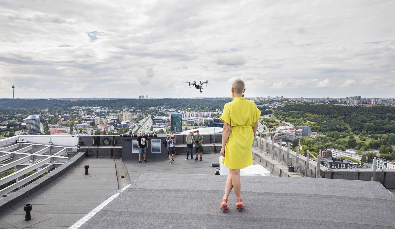„Vos privažiavus prie dangoraižio, Justė su nepasitikėjimu pažvelgė į mane ir paklausė, ar aš rimtai noriu, kad ji ten stovėtų. Man linktelėjus galva, Justė ilgai kaupė jėgas, tam, kad prisiverstų pakilti liftu ant stogo. Žadėjo susidoroti, paskui prašė atšaukti filmavimą. Vienu metu net pamanėme, kad viskas žlugo ir nepavyks Justės nufilmuoti ant to stogo. Bet ji profesionalė, rado savyje jėgų įveikti baimes. Nors mūsų komandos dviem vyrukams kylant liftu į viršų akys plėtėsi, rankos nevalingai gniaužė turėklus, o veide kaip mat dingo šypsenos. Ne vien Justei tai buvo iššūkis“, – prisimena M. Meškauskas.