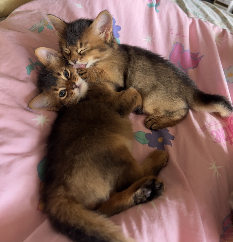 Be to, Somalio katės – itin lengvai dresuojamos. „Mano katės žino, kad kai grįžtame namo – jos visada gauna skanėstų – šaltyje džiovintos mėsytės. Žinokite, jeigu neturime laiko skanėsto patiekti – kyla konfliktinė situacija. Jos pasipiktinę laksto iš paskos“, – nusijuokia Rita.