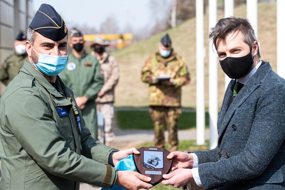 „Esame dėkingi Italijos kariams už profesionalų NATO oro policijos misijos vykdymą, kuris buvo sėkmingas net ir visą pasaulį apėmusios pandemijos metu. Šiandien nuoširdžiai sveikiname atvykusius Ispanijos karius, kuriems linkime giedro ir saugaus Baltijos šalių dangaus. Ačiū jums už atsidavimą Baltijos šalių saugumo užtikrinimui“, – sveikinimo kalboje sakė krašto apsaugos viceministras Margiris Abukevičius, pridūręs, kad „oro policijos misija Lietuvai, Latvijai ir Estijai bus svarbi visuomet“.
