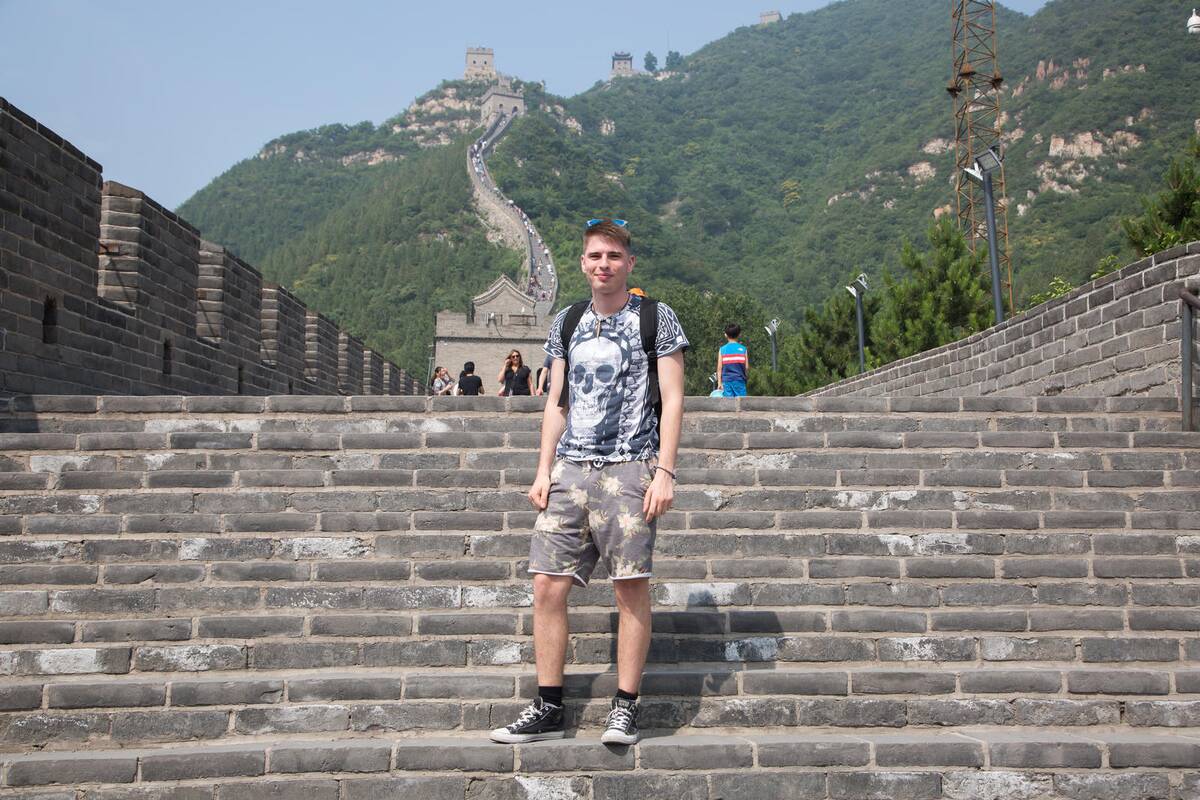 Jaunuolių kompanijai teko paplušėti ir kopiant į Didžiąją kinų sieną, tačiau jie neslepia, jog nuo aukščiausios vietos atsivėręs nepakartojamos kalnų panoramos vaizdas privertė pamiršti nuovargį. „Didžioji kinų siena – įspūdingas 6 000 km ilgio statinys, kurio pirminė paskirtis – apsiginti nuo klajoklių. Lipti šia siena nebuvo lengva dėl nuolat kepinančios saulės bei skirtingo laiptų aukščio – vieni buvo visiškai žemi, kiti – siekė net pusę metro, tačiau išvydę nepakartojamą panoramą, net nesuabejojome, jog kopti buvo verta“, – pasakojo Daniel Januškevič, studijuojantis telekomunikacijų inžineriją VGTU.