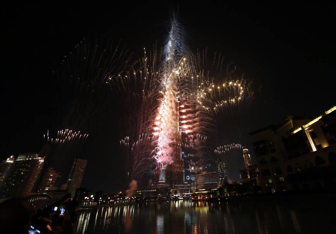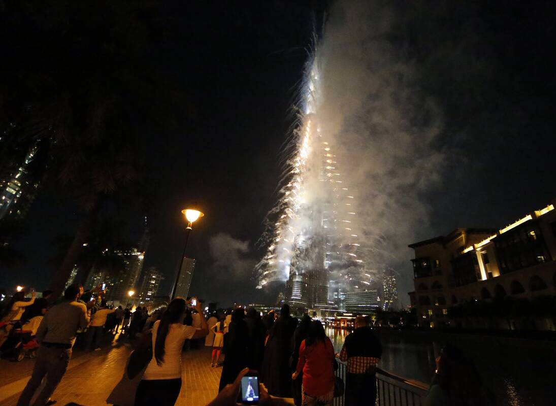 828 metrų aukščio dangoraižį „Burj Khalifa“ nušvietė pirotechnikos ugnys; fejerverkai buvo leidžiami ir kitur šiame pajūrio mieste.