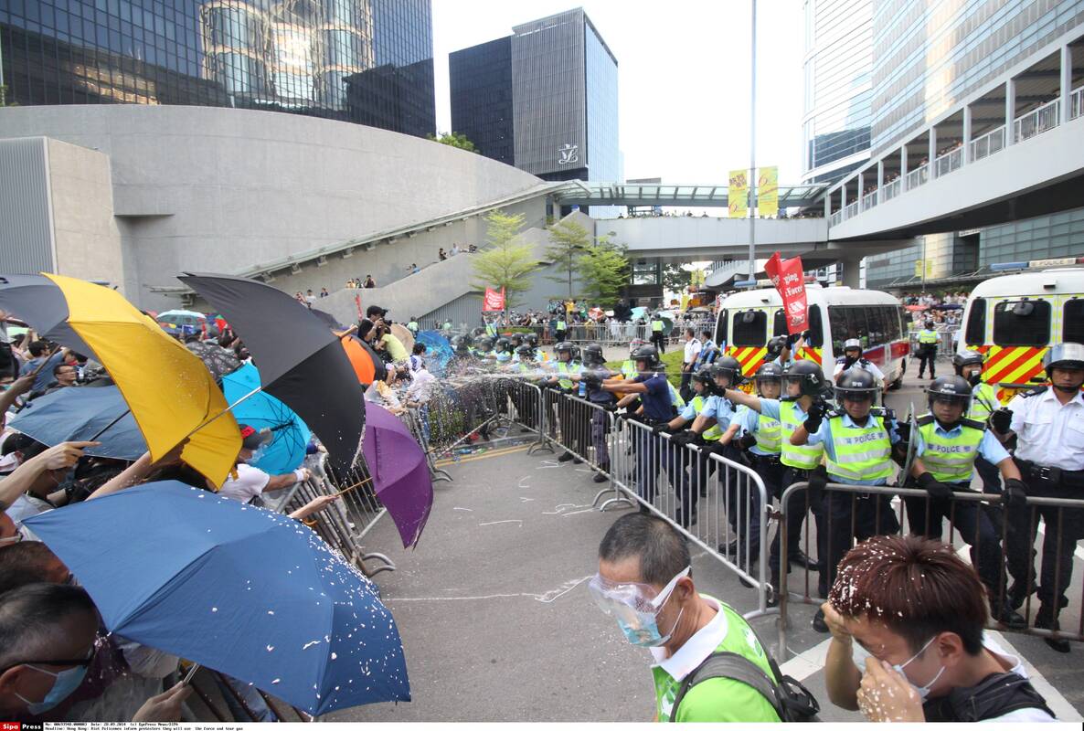 Skėtis sparčiai tampa šių demonstracijų, kurios nuo sekmadienio paralyžiuoja miestą, simboliu, nes ir taip yra esminis atributas šiame liūtimis garsėjančiame Azijos finansų centre.