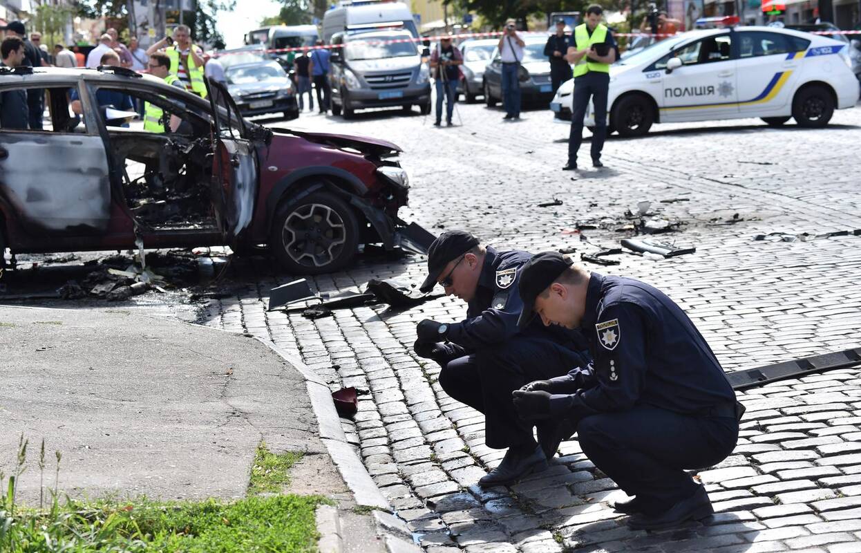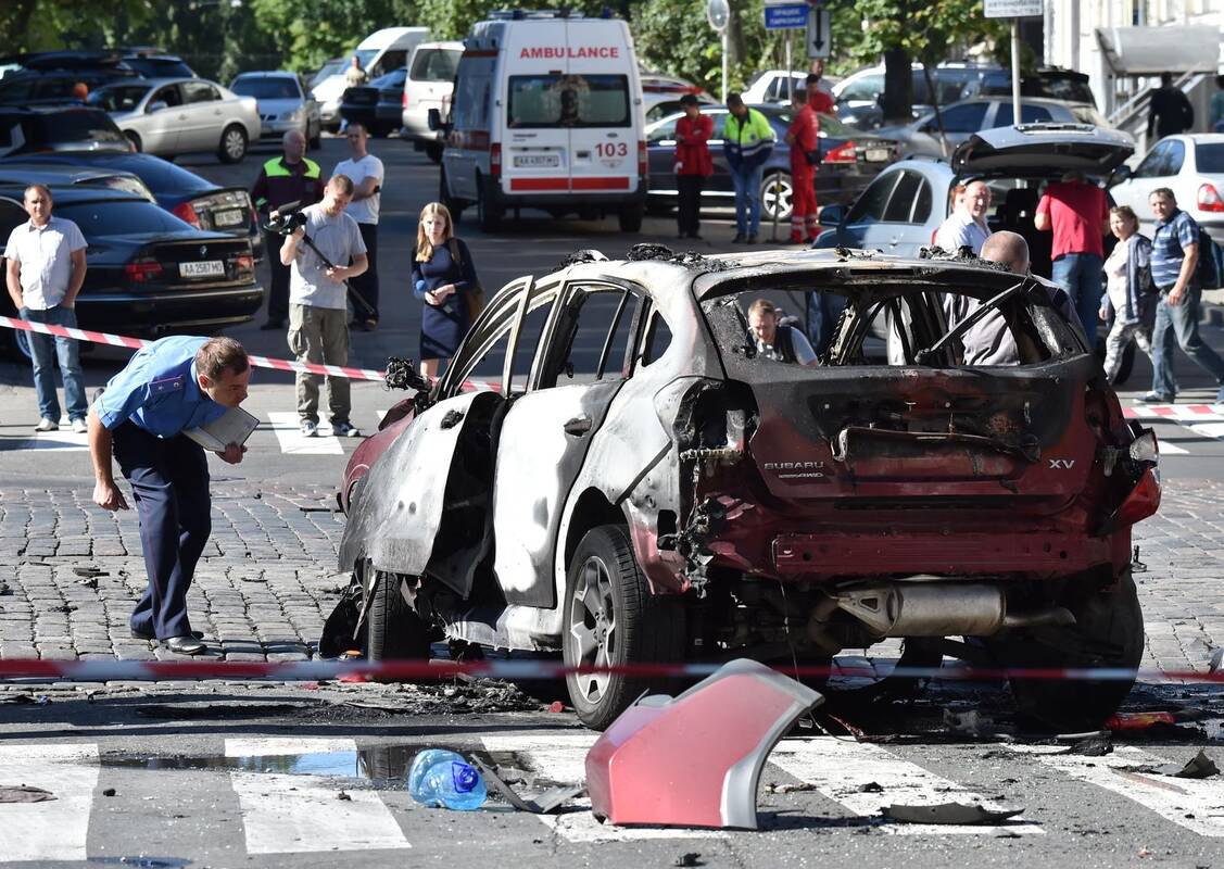 „Automobilis sprogo Bohdano Chmelnyckio ir Ivano Franko gatvių sankryžoje priešais greitojo maisto restoraną „McDonald's“, – sakoma laikraščio pranešime.