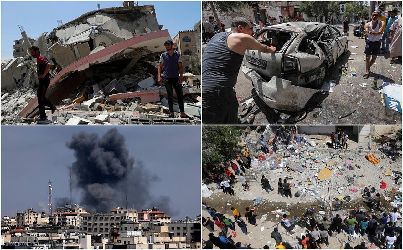 Izraelis savo ruožtu surengė šimtus antskrydžių prieš taikinius Gazos Ruože – apie 2 mln. gyventojų turinčiame mažame pajūrio anklave, kontroliuojamame „Hamas“ ir blokuojamame žydų valstybės. Izraeliečiai per šiuos antskrydžius, anot kariškių, taikėsi į palestiniečių „teroro“ objektus.