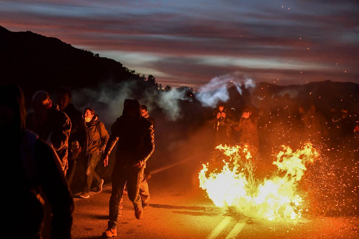 Vėliau antradienį protestuotojai į policiją įvairius daiktus svaidė kalvose netoli būsimų stovyklų, parodė vietos televizija.