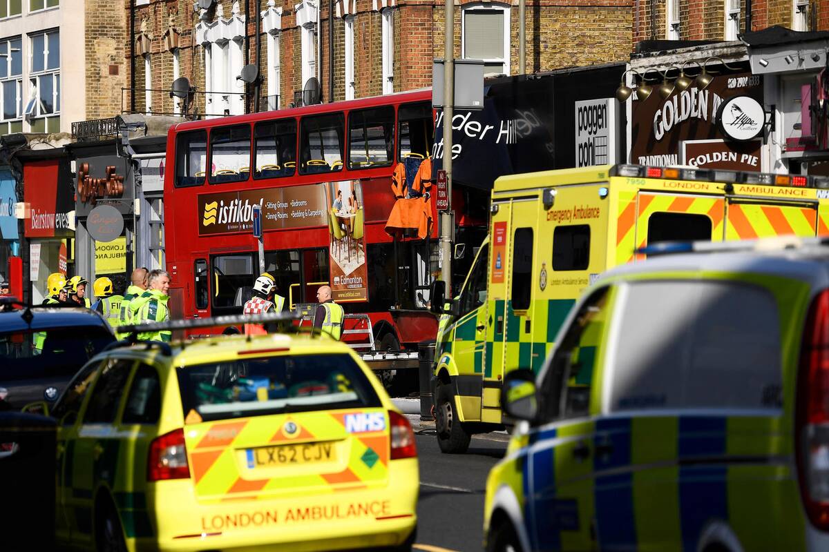 Dvi įstrigusios keleivės buvo išvaduotos ugniagesių, o autobuso vairuotojas nuvežtas į ligoninę. Londono greitosios pagalbos tarnyba nurodė suteikusi pagalbą šešiems pacientams.