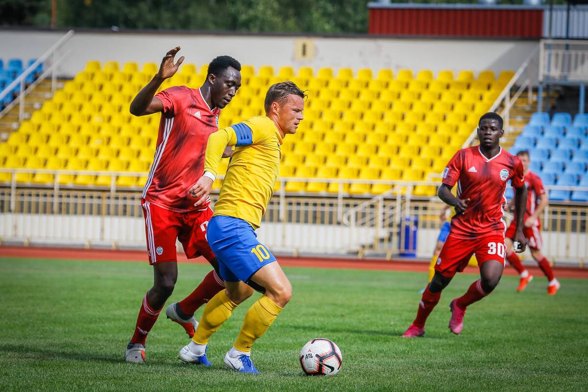 Svečiai iš Liepojos po praleisto įvarčio ėmė kiek aktyviau kurti progas atlantiečių aikštės pusėje, tačiau patikimai žaidę gynėjai bei vartininkas Lukas Paukštė neleido varžovams pasižymėti.
