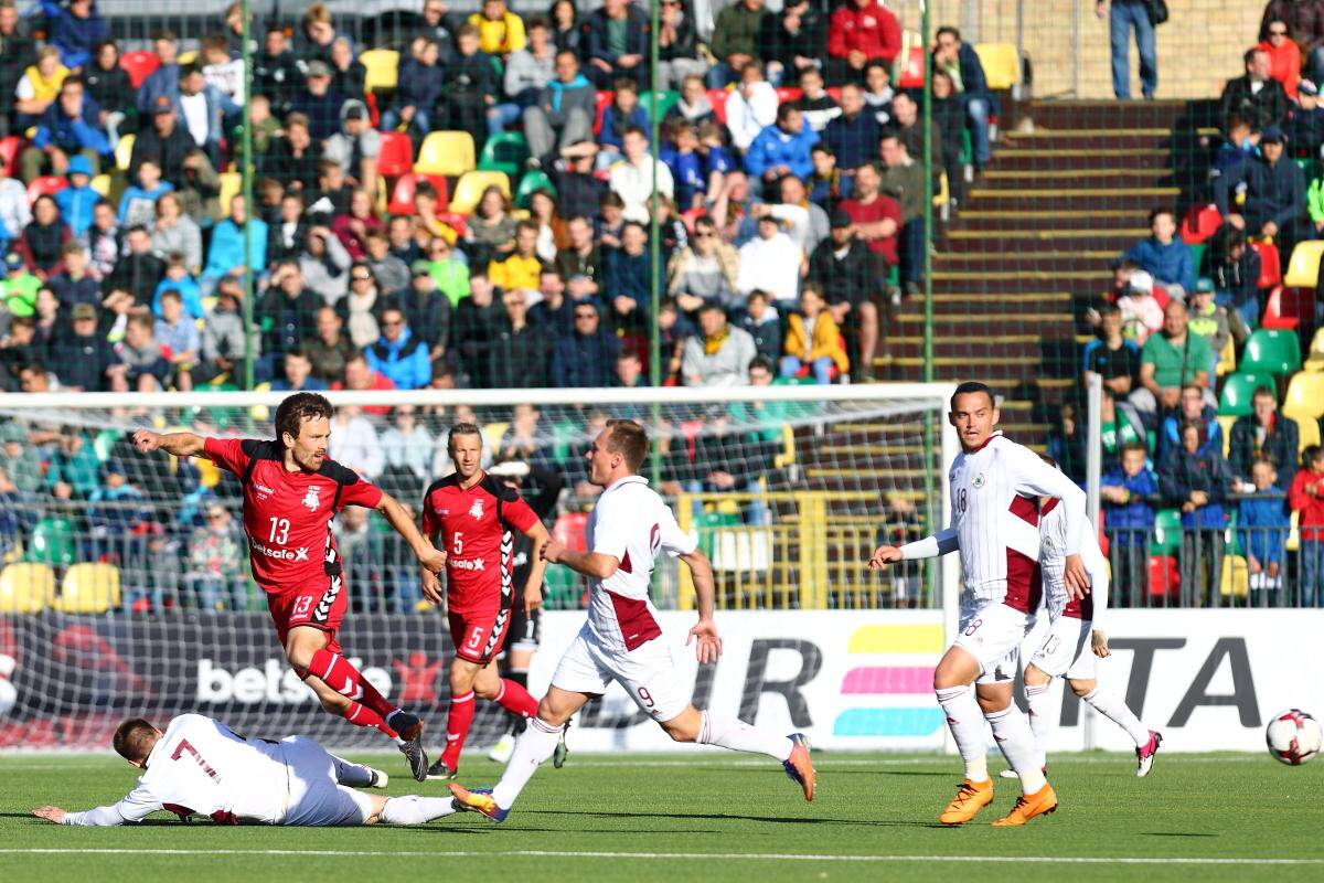 21 minutę kilo pirmas rimtas pavojus prie Lietuvos vartų, bet puikiai sužaidė šeimininkų vartininkas Džiugas Bartkus. Po lietuvių klaidos, į baudos aikštelę įsiveržęs Janis Ikauniekas iš arti smūgiavo du kartus, bet vartų sargas atrėmė smūgius.