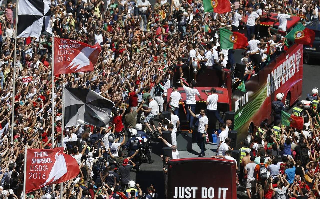 Rinktinę oro uoste ir sostinės centre pasitiko dešimtys tūkstančių žmonių. Portugalijos rinktinė finalo rungtynėse Paryžiuje po pratęsimo 1:0 įveikė pirmenybių šeimininkę Prancūziją.