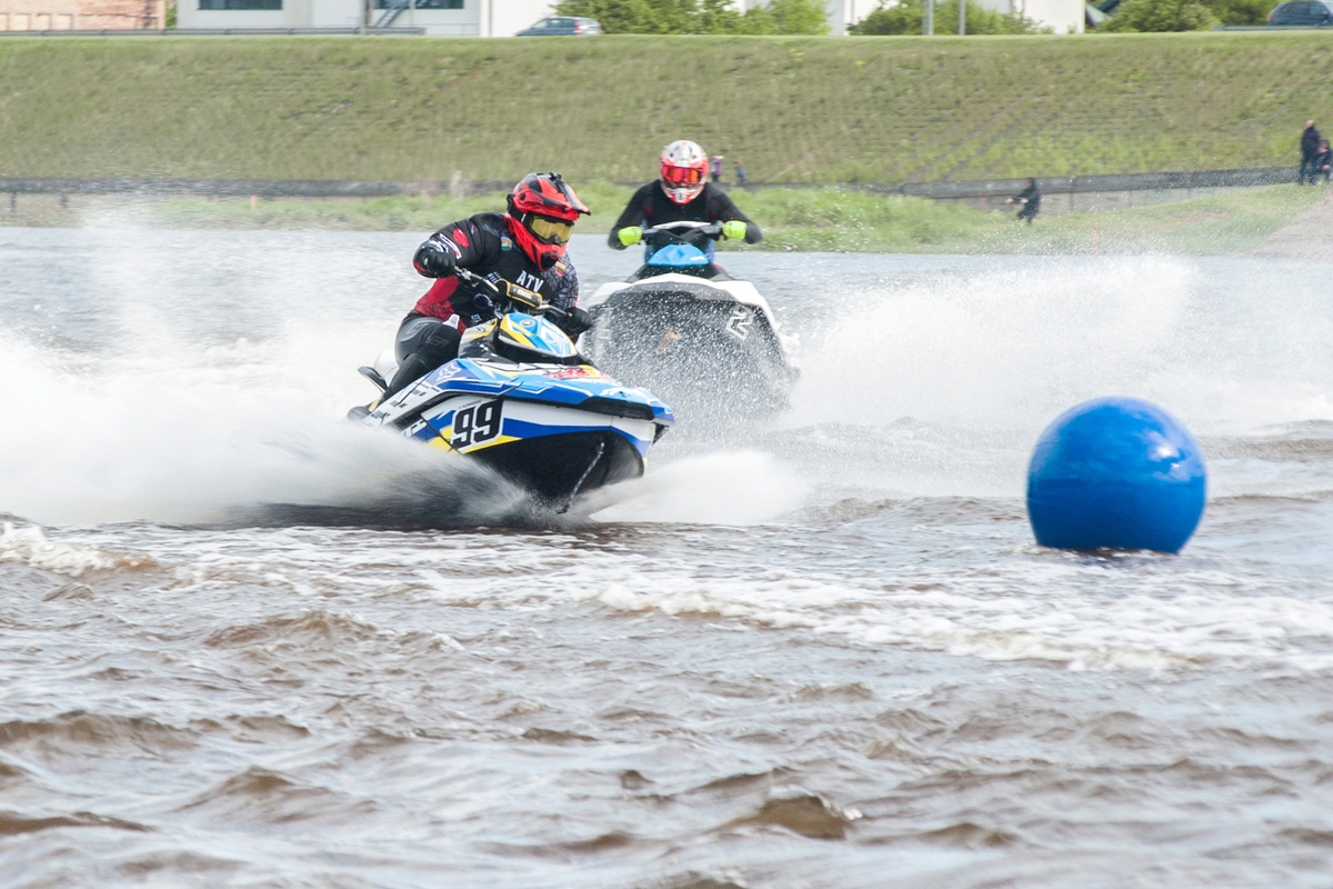 Pagal pajėgumą ir patirtį į atskiras klases suskirstyti dalyviai pirmiausia startavo savo turimais vandens motociklais. „Runabout Sport“ klasėje pergalę išplėšė Nerijus Juodis (30,02 sek.), vos kelių dešimtųjų sekundės dalių persvara aplenkęs pernykštį varžybų nugalėtoją ir Lietuvos slalomo vicečempioną Aidą Eidukaitį. Trečias liko Audrius Piktys. „Runabout mėgėjų“ kategorijoje laimėjo Petras Šadianecas (34,8 sek.).