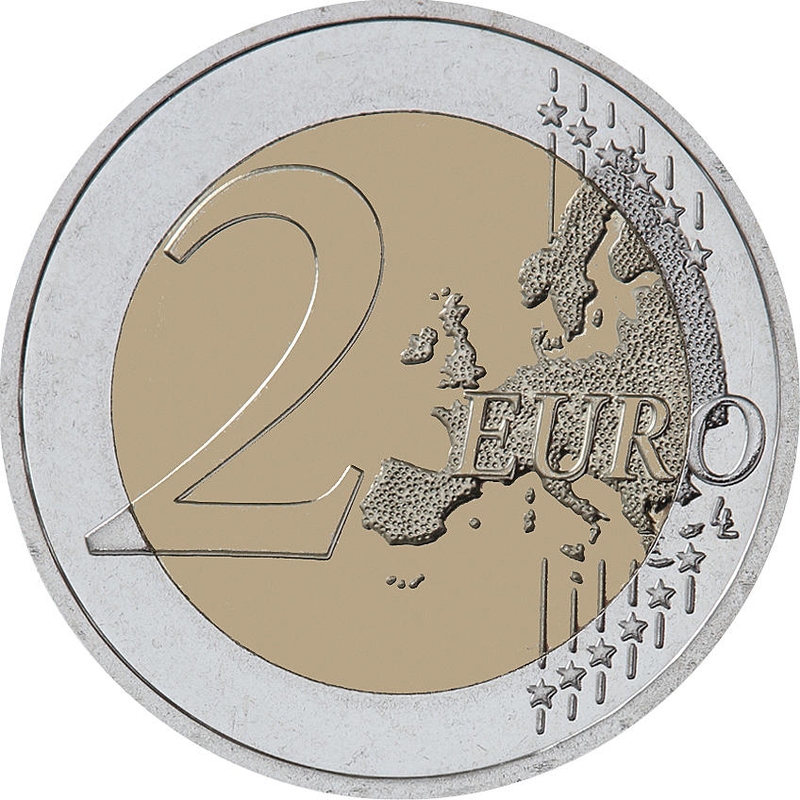 Monetos bendroji pusė – kaip ir apyvartinių 2 eurų monetų. Kitos pusės centre pavaizduota ES vėliava, kurią supa žmonių siluetai. Šį dizainą rinko ES gyventojai balsuodami internetu. Jie galėjo balsuoti už vieną iš 5 variantų, kuriuos iš 62 pateiktų darbų atrinko profesionalų komisija. Nugalėjusi moneta surinko 30 % balsų, jos autorius – Graikijos banko dailininkas Georgijas Stamatopulas (Georgios Stamatopoulos).