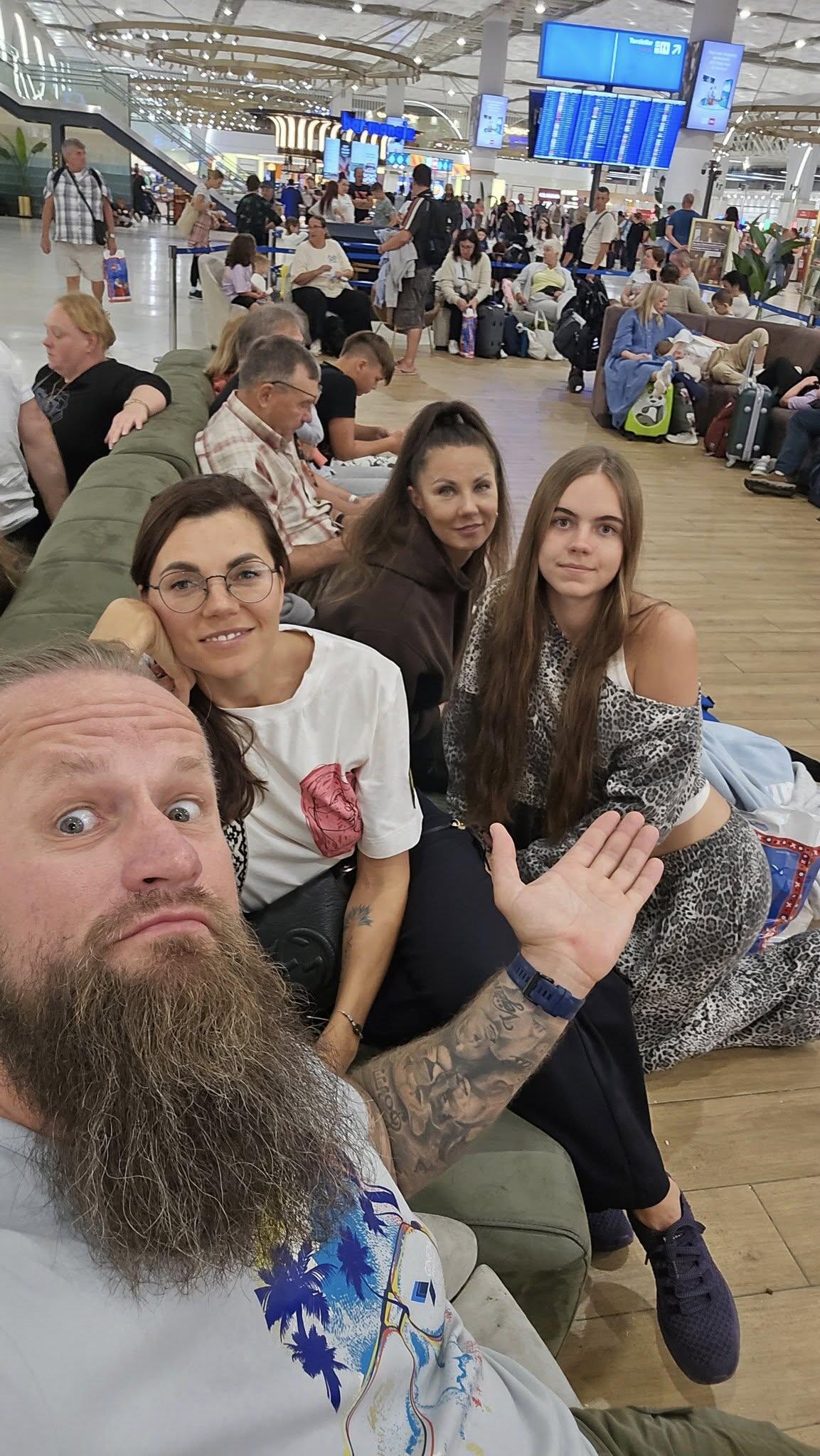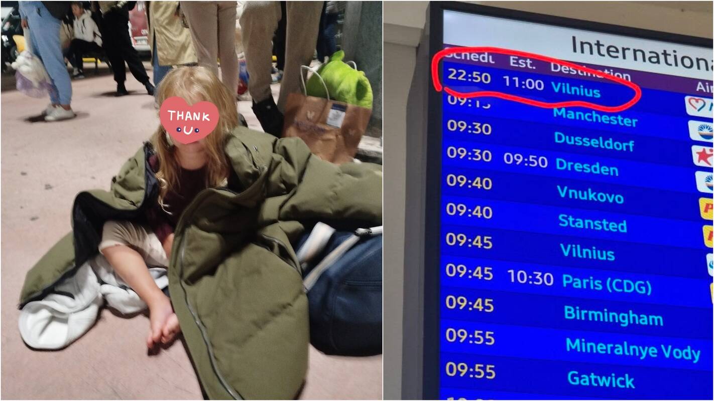 Jis pridūrė: „Atvykus į oro uostą, praėjus visus check in ir atidavus bagažą, sužinojom, kad skrydis atidėtas iki 6 val. ryto, tada beveik 2 valandą nakties surinko žmones ir išvežė į viešbutį trimis autobusais, kažkas netilpo ar liko oro uoste dar... Bet tie, kas važiavo į viešbutį, gavo užeit į registratūrą, pasisiot ir vandens pasiimt ir vos ne po 10 minučių buvom susodinti į autobusus ir atgal į oro uostą išvežti. Čia vėl per nauja visas patikras praeit reikėjo ir t.t. 6 valandą visi laukėm skrydžio, kol prieš septynias sužinojom, kad skrydžio nėra ir neaišku kada bus. Tai va, vis dar sėdim oro uoste, du trečdaliai keleivių – šeimos su vaikais.“