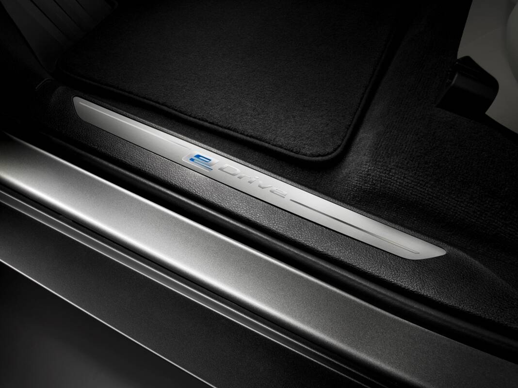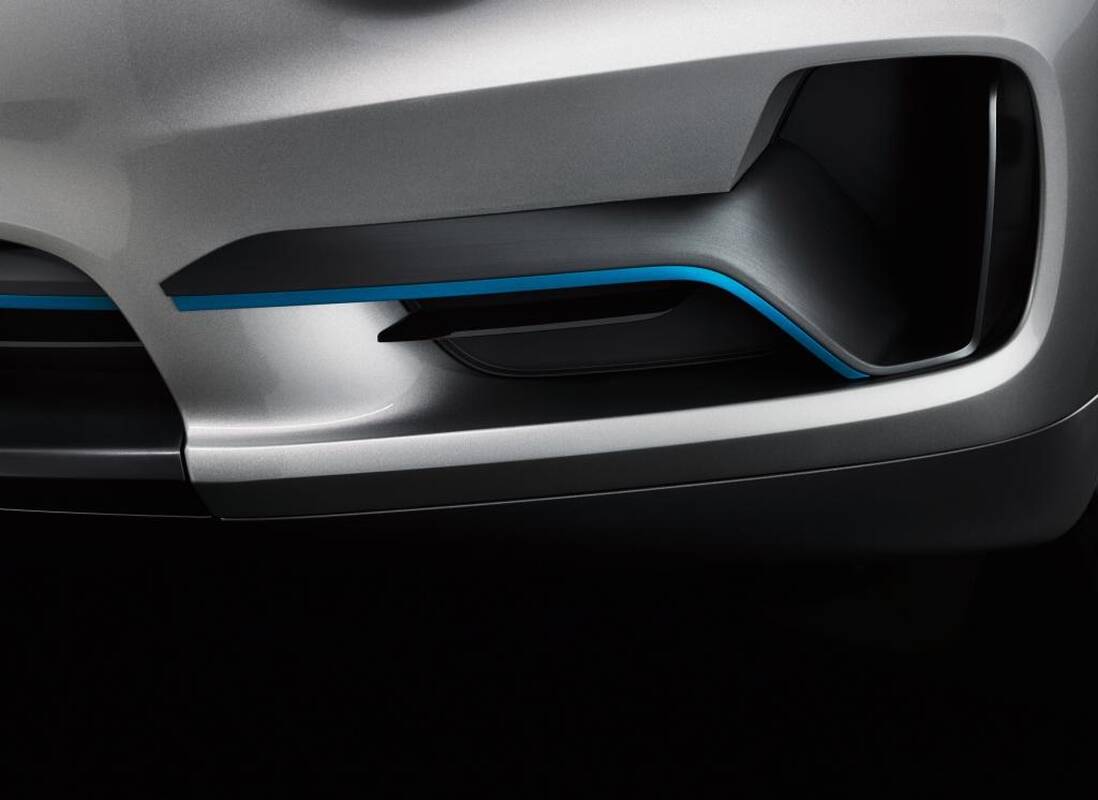 Melsvos apdailos detalės naudojamos ir automobilio išorėje. Ši spalva puošia priekinių grotelių dalis, mėlyna linija integruota galiniame buferyje ir tarsi sujungia skirtingose pusėse esančius išmetamuosius vamzdžius. Elektros įkrovimo jungties dangtelis taip pat apvestas melsva juosta, o pradėjus krauti baterijas iš 220 V elektros lizdo, jungtis dailiai apšviečiama.