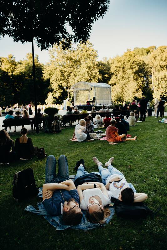 Rugpjūčio 26 d. susitikti prie didžiojo Bernardinų sodo fontano pakvies Ieva Dūdaitė, nominuota prestižinei „Opus Classic 2020“ premijai. Ji atliks kūrinius iš savo debiutinio albumo „Tiersen Meets Chopin“, pelniusio jai tarptautinį pripažinimą. Savo rečitalyje atlikėja nukels į tą patį, bet labai skirtingą Paryžių: svajingi Chopino noktiurnai, baladės, valsai leis pajusti XIX a. salonų dvasią, o filmo „Amélie“ garso takelio melodijos primins, kad net ir naujausių technologijų amžiuje, pabėgti nuo savo jausmų neįmanoma.