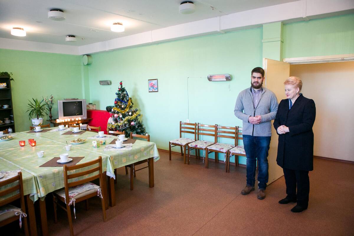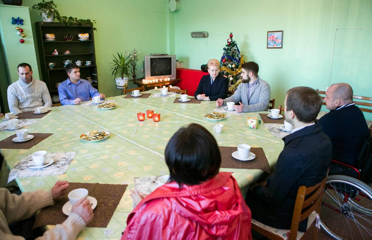 Prezidentė Dalia Grybauskaitė labdaros ir paramos fondo „Vilties centras“ valgykloje susitiko su centro gyventojais, lankytojais ir savanoriais. Dviejose fondo valgyklose Vilniuje kas dieną nemokamai pamaitinami apie 500 skurstančių ar vargingai gyvenančių žmonių.
