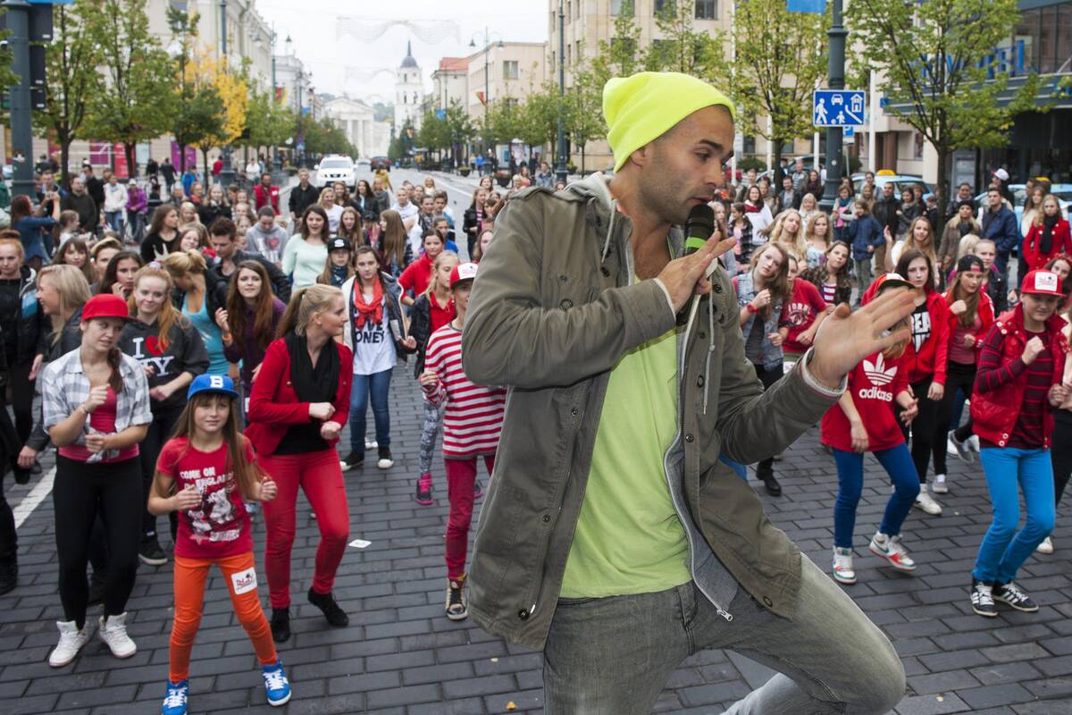 Pačiame Gedimino prospekte, šalia V.Kudirkos aikštės, šokti už taiką ne tik pasaulyje, bet ir savo gyvenime ragino VŠĮ „Savanorių centras“ bei „Showmakers“ akademija.