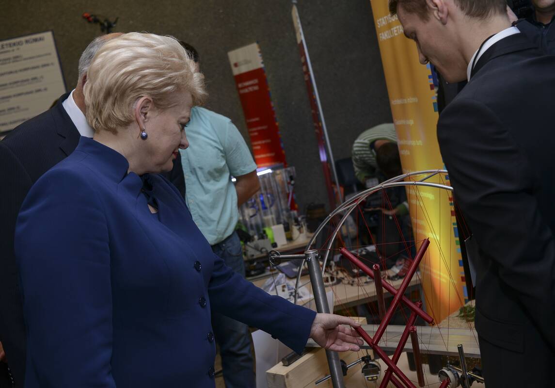 Lietuvos Respublikos Prezidentė Dalia Grybauskaitė Vilniaus Gedimino technikos universitete (VGTU) atidarė Mokslo festivalio „Erdvėlaivis Žemė" atradimų dieną.