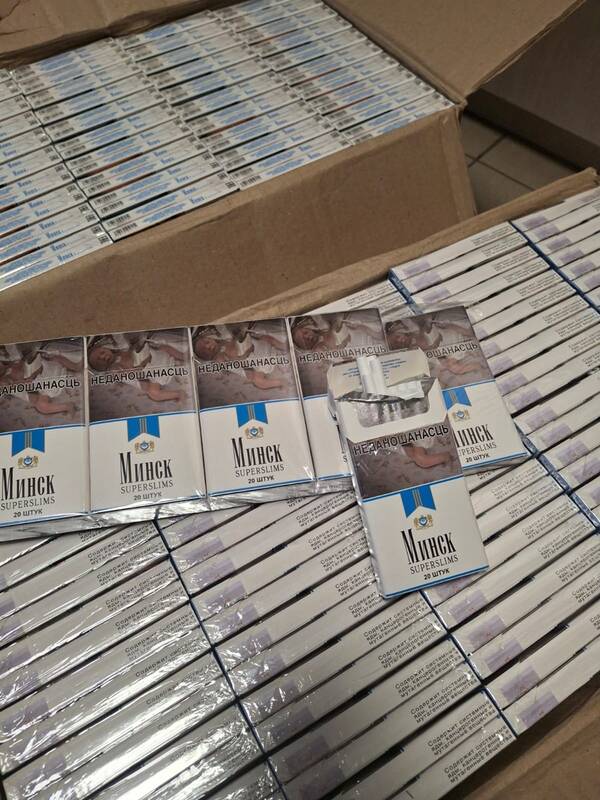 Dronas skraidino dvi dėžes Gardino tabako fabrike „Neman“ pagamintų cigarečių „Minsk Superslims“ su baltarusiškomis banderolėmis.