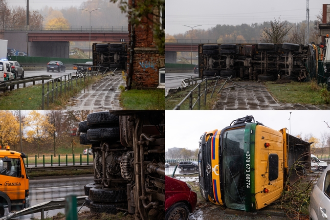 Nusikaltimai ir nelaimės Kelyje „Via Baltica“ nuo kelio nuvažiavo ir apvirto vilkikas: kalta sprogusi padanga?