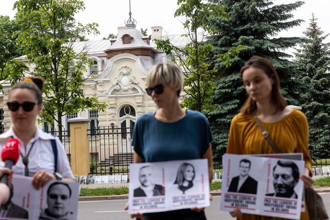 Prie Baltarusijos ambasados – profsąjungų piketas