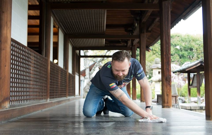 Japonijoje V. Radzevičius ir M. Starkus šveitė šventyklos grindis