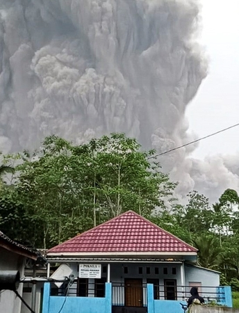 Gyventojai bėga nuo didžiulio pelenų debesio, kuris išsiveržė iš Indonezijos ugnikalnio