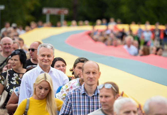 G. Nausėda Joniškėlyje nešė rekordinio dydžio trispalvę