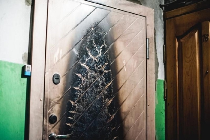 Name – gaisras: padegtos buto durys ir kilimėlis