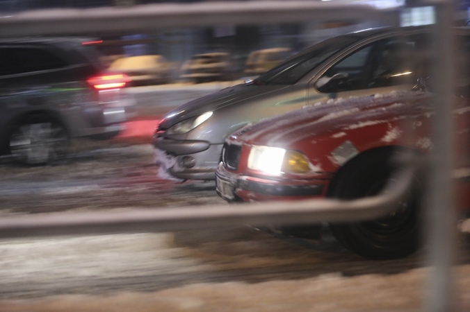 Dėl slidžių kelių pranešama apie apvirtusius automobilius, susidūrimus, žūčių išvengta